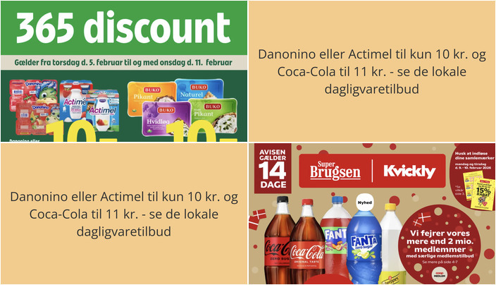 Coop365 har et fremragende tilbud på Danonino eller Actimel, hvor du kan få 300-400 g for kun 10 kr. pr. stk. Dette tilbud gælder fra torsdag den 5. februar til onsdag den 11. februar.
